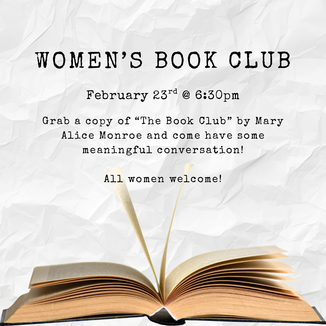 Women’s Book Club We’d love for you to join us! All women welcome! + Add to Google Calendar + iCal / Outlook export 00 days 00 hours 00 minutes 00 seconds Date Feb 23 2026 Time 6:30 pm - 8:00 pm Share this event